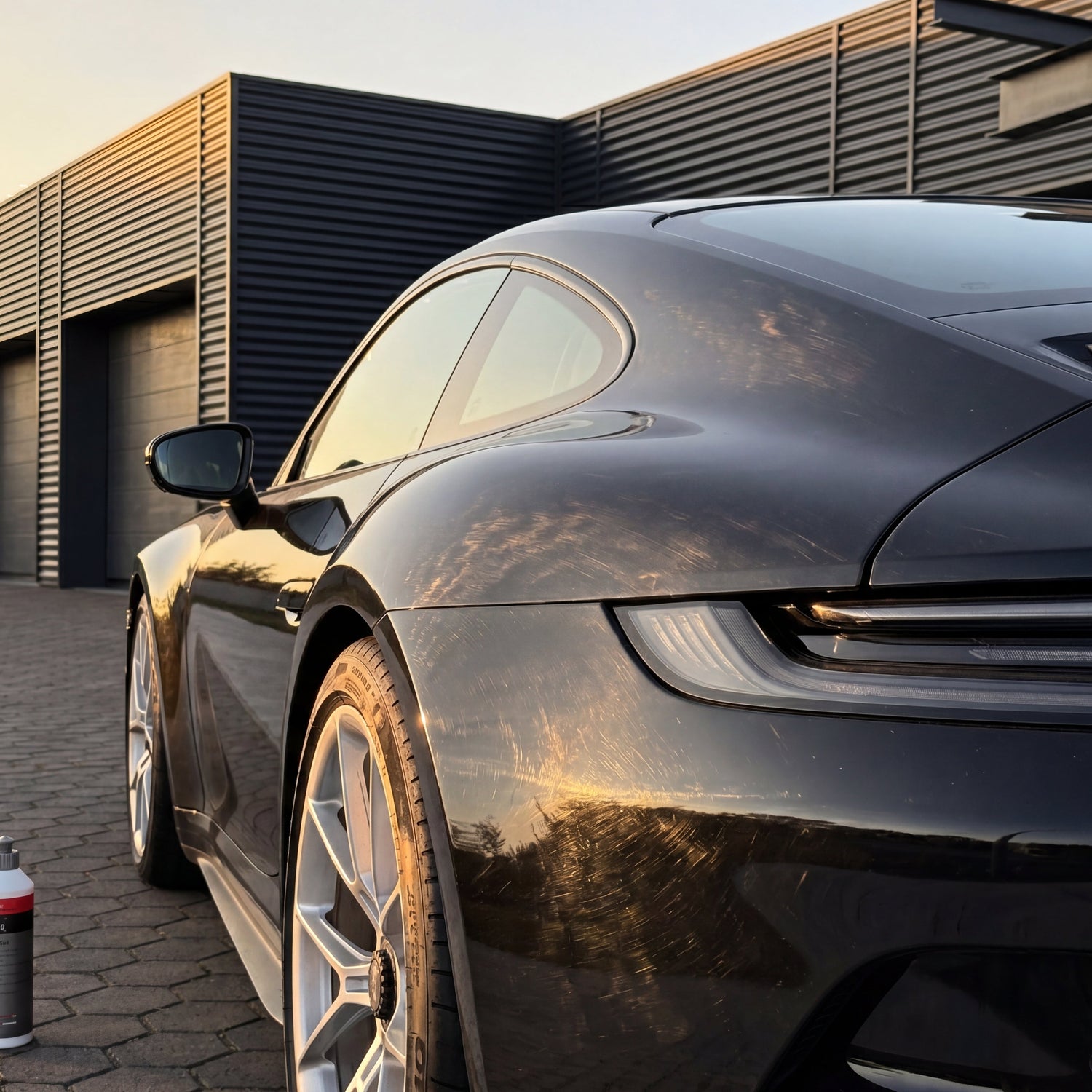 The honest limits: Bitumen, tar, or silicone stains do not react chemically with aluminum oxide — for that, you need a tar remover before polishing. Very soft Japanese clear coats (Toyota White, some Mazda Red tones) can quickly tip into the hologram phase with the lamb's wool pad; here, it's better to start directly with the Foam Pad Red.