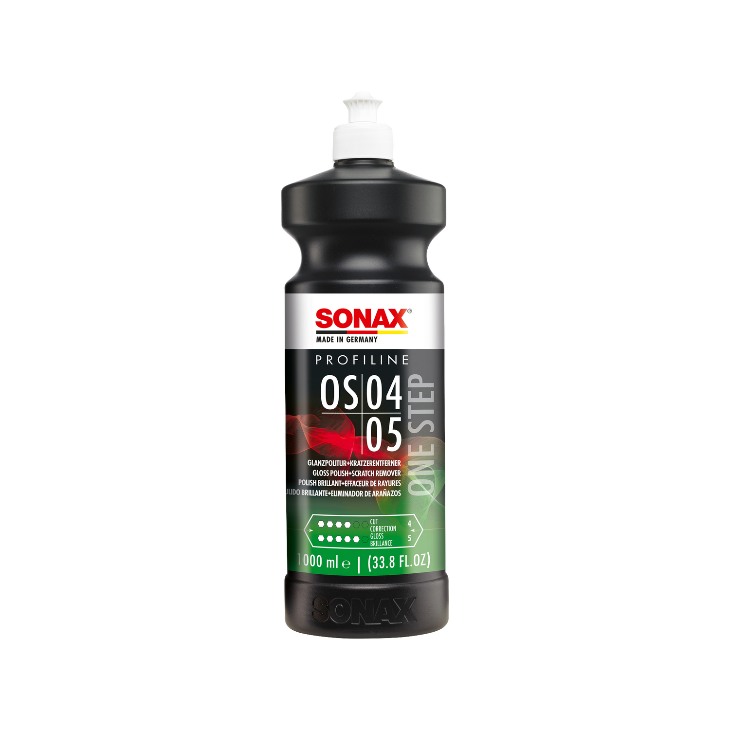 What does SONAX PROFILINE OS "04-05" achieve? The one-step polish combines medium abrasive power with high gloss performance — scratch correction and finishing in one step, silicone-free and machine-compatible for professional workshop and detailing use.