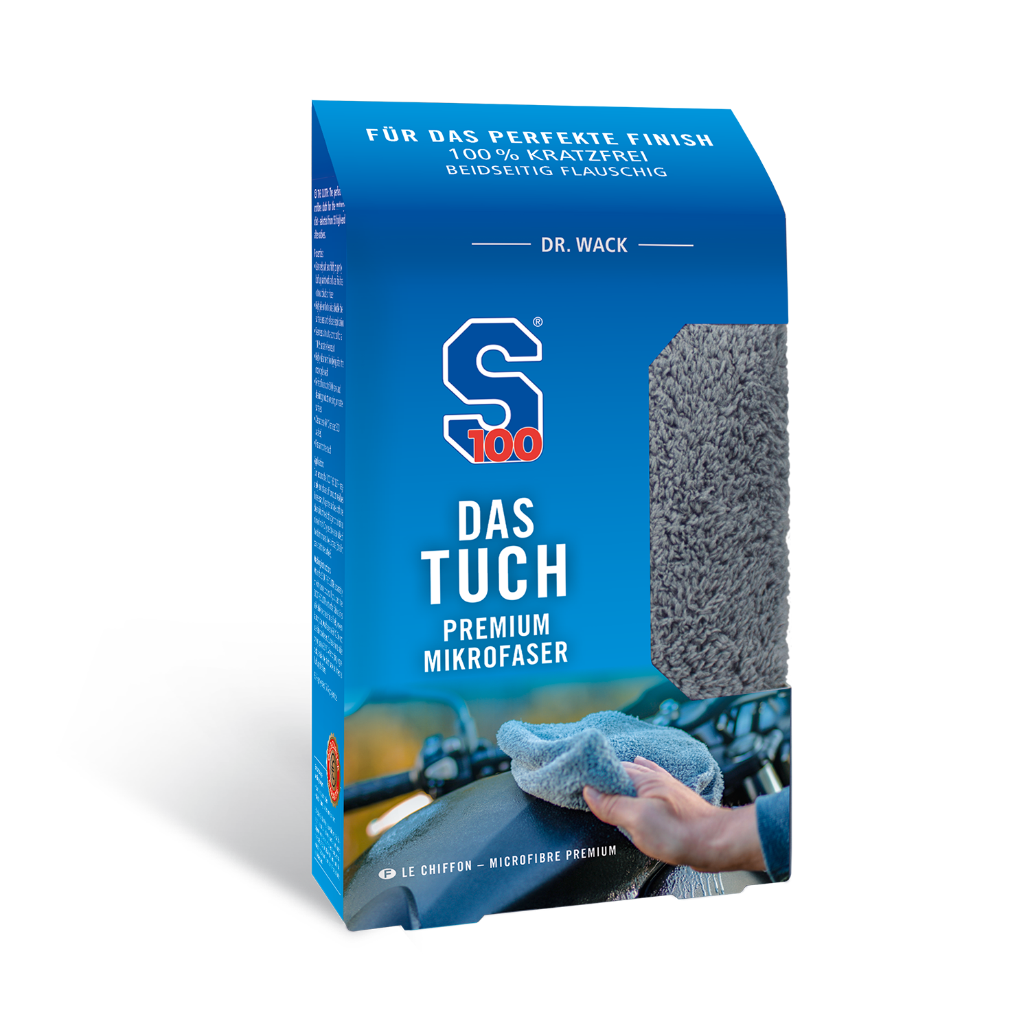 Das S100 DAS TUCH ist extrem weich und flauschig – perfekt für das sanfte Auspolieren von Polituren, Wachsen oder Reinigungslösungen, ohne dass unschöne Wolken oder Schleier entstehen. Es eignet sich optimal zum Trocknen nach der Motorradwäsche aufgrund seiner hohen Saugfähigkeit. Ideal einsetzbar für glänzende wie matte Oberflächen – zum Beispiel Lacke, Helme, Visiere, Lederflächen oder Verkleidungsteile.
