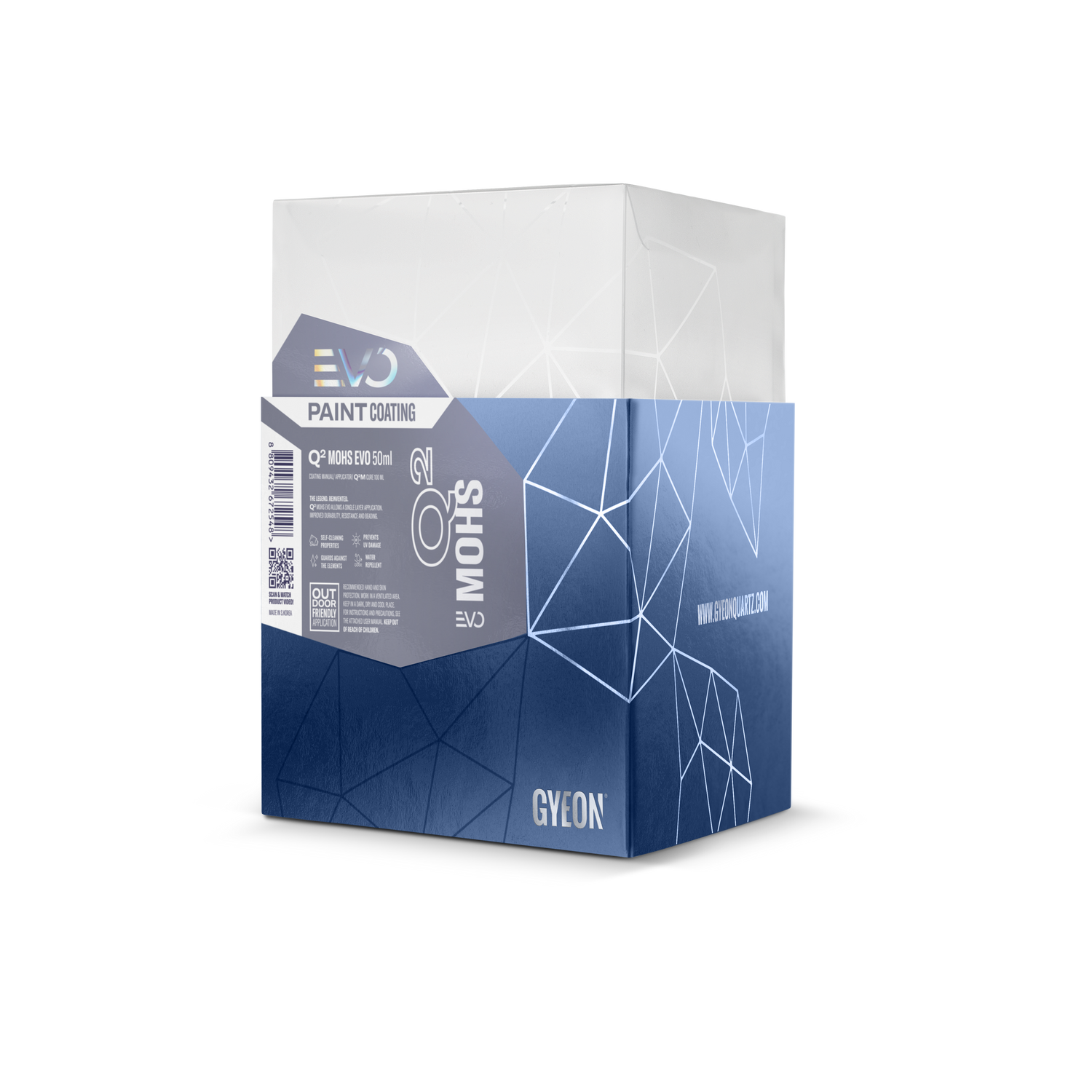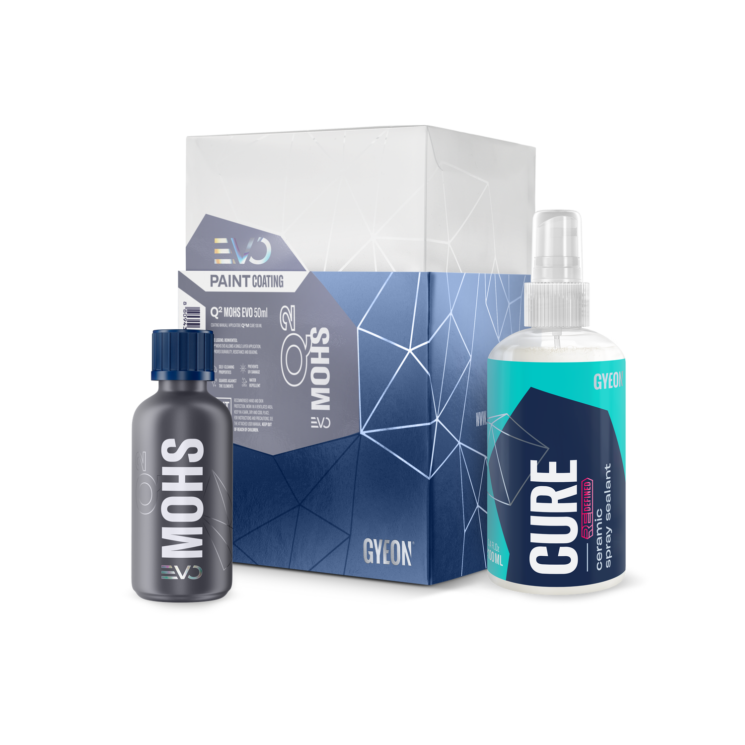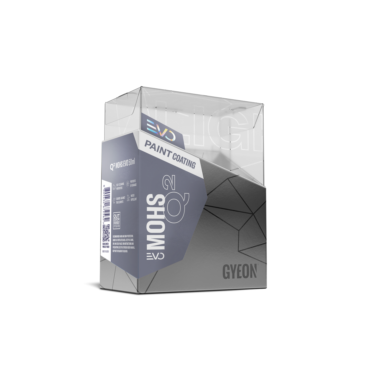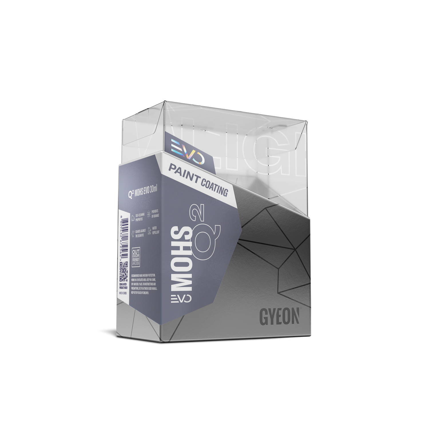 GYEON Q² Mohs EVO Paint Coating ist eine weiterentwickelte Keramikversiegelung auf Polysilazan-Basis, die extrem glatte, hoch hydrophobe Oberflächen erzeugt und bei 1–2 Schichten eine Standzeit von bis zu 36 bzw. 48 Monaten ermöglicht.
