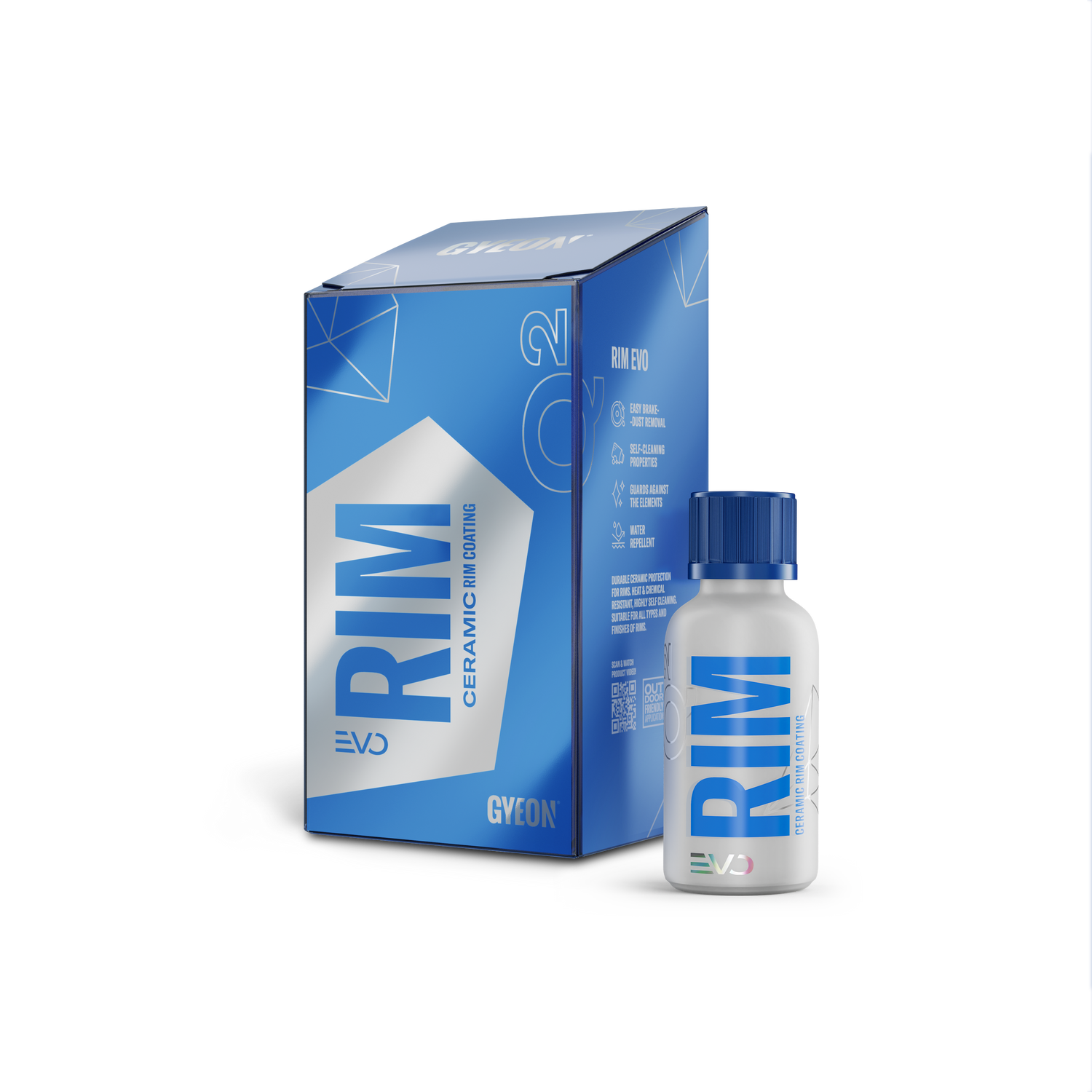 GYEON Q² Rim EVO ist eine hitzebeständige Keramikversiegelung für Felgen, die eine widerstandsfähige, hydrophobe Schutzschicht bildet, Bremsstaubanhaftung reduziert und die Reinigung dauerhaft erleichtert.