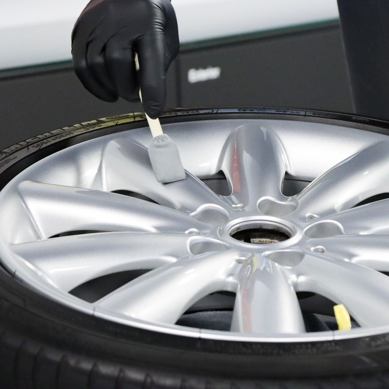 Für das beste Ergebnis sollten die Felgen vor dem Versiegelungsprozess gründlich gereinigt und vorbereitet werden. Die Anwendung der Ceramic Rims "Cr0.01" erfolgt mit einem speziellen Applikationsstift, der die Versiegelung gleichmäßig auf der Felgenoberfläche verteilt. Nach dem Auftragen sollte die Versiegelung ablüften und anschließend mit einem Mikrofasertuch auspoliert werden. Eine doppelte Beschichtung kann die Haltbarkeit der Schutzschicht weiter erhöhen.