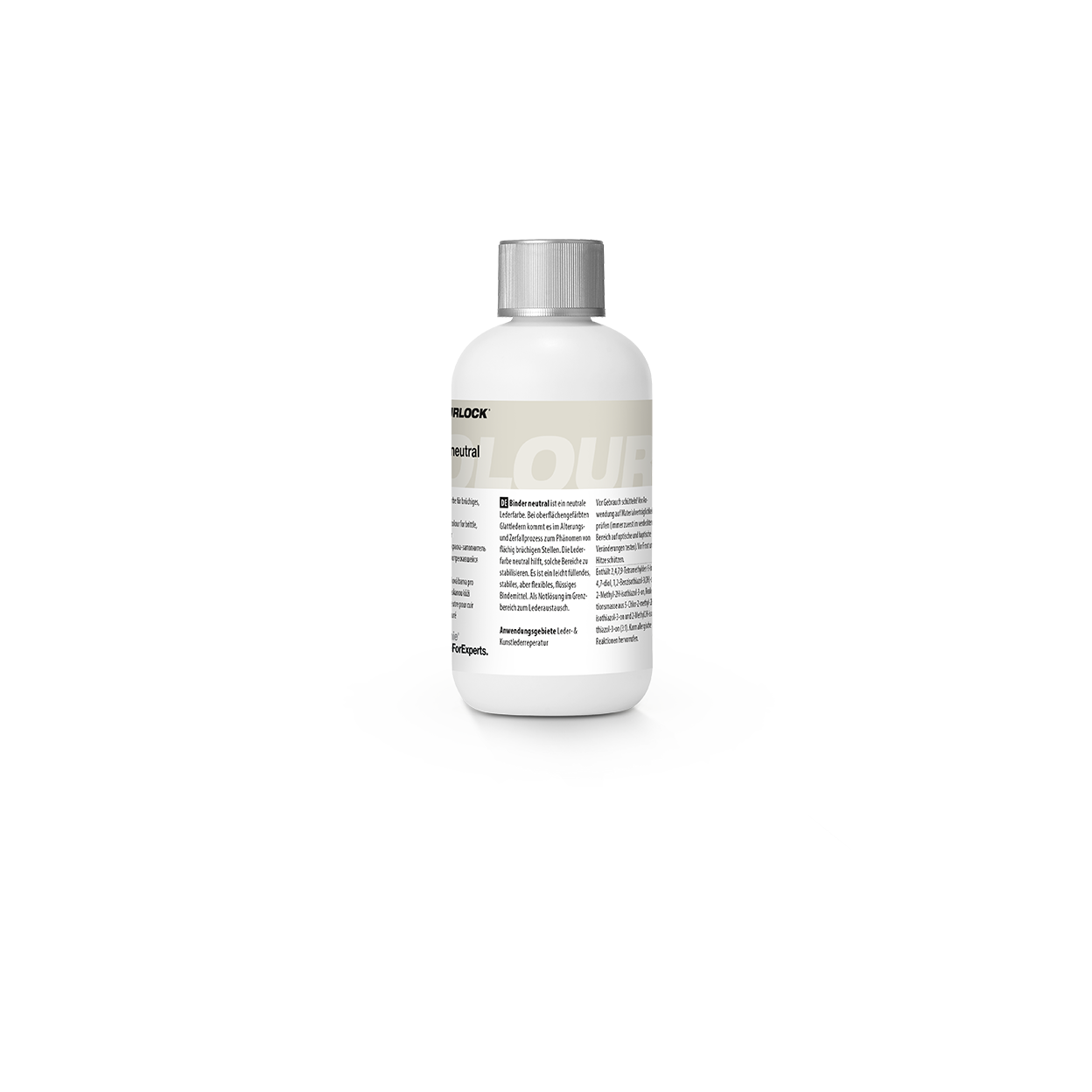 Was macht COLOURLOCK Binder Neutral? — Der neutrale Binder stabilisiert beschädigte Lederoberflächen, füllt feine Risse und Abriebstellen, stärkt die Struktur und bildet die tragende Basis, bevor farbspezifische Produkte wie Leather Fresh oder Fluid Leather aufgetragen werden.