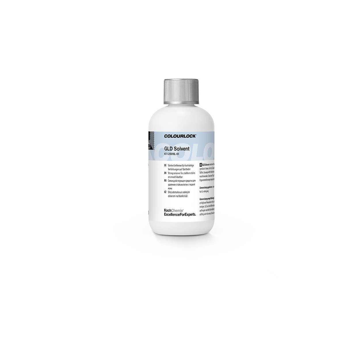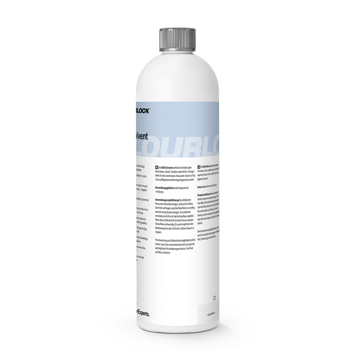 Wofür wird COLOURLOCK GLD Solvent verwendet? — Der leistungsstarke Reiniger löst hartnäckige Verfärbungen, Farbübertragungen und alte Beschichtungsreste auf Leder an und ermöglicht eine sichere, kontrollierte Weiterbearbeitung.