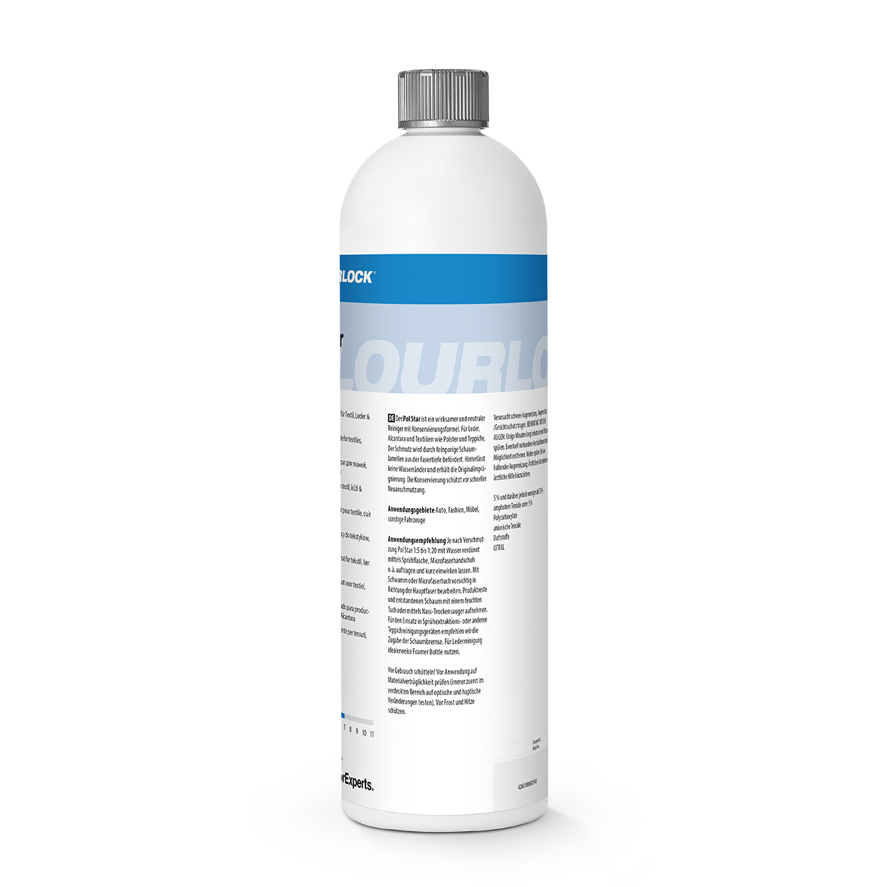 COLOURLOCK Pol Star ist der universelle, materialschonende Reiniger für textile Oberflächen, Alcantara und viele Lederarten. Entwickelt für Interieur-Detailing, Möbelpflege und professionelle Reinigungssituationen, löst Pol Star selbst festsitzende Verschmutzungen, ohne die Fasern aufzurauen oder das Material auszutrocknen. Ob Sitze, Teppiche, Einstiegsbereiche, Türtafeln, Lenkrad-Alcantara oder Textiloberflächen in Wohn- und Freizeitbereichen – Pol Star reinigt tiefenwirksam und sicher, ohne klebrige Rückstände oder harte Kanten zu hinterlassen.