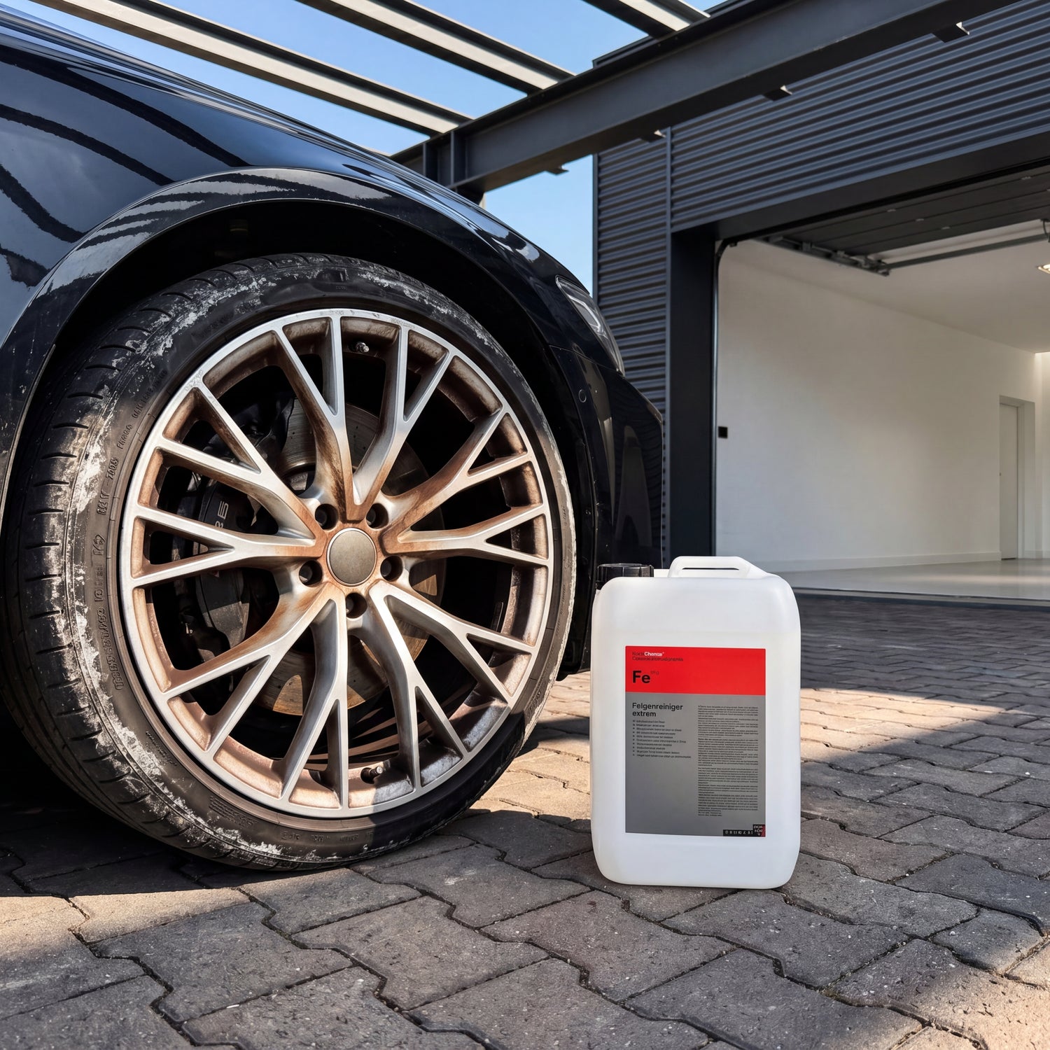 Der Fe ist für säurebeständige Materialien gebaut. Stahlfelgen, lackierte Alufelgen mit intaktem Klarlack, Waschhallenfliesen und Nutzfahrzeuge gehören dazu. Die Reinigungswirkung auf eingebranntem Bremsstaub von LKW, Bus und Baumaschine ist branchenweit unerreicht — keine säurefreie Alternative kommt an die Tiefenwirkung heran.