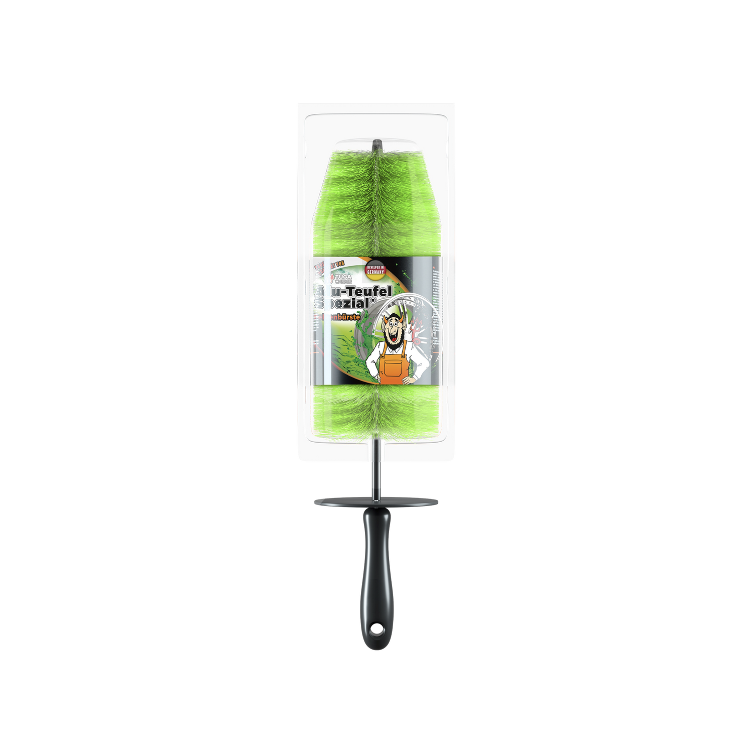 Die Tuga Chemie Felgenbürste „Alu-Teufel Spezial (Grün)“ ist eine robuste, materialschonende Felgenbürste, die speziell für die gründliche Reinigung von Alu- und Stahlfelgen entwickelt wurde und selbst schwer zugängliche Bereiche effektiv erreicht.